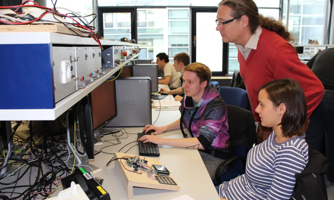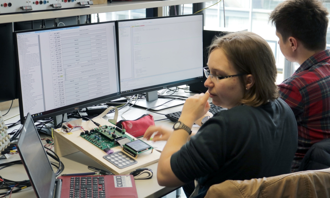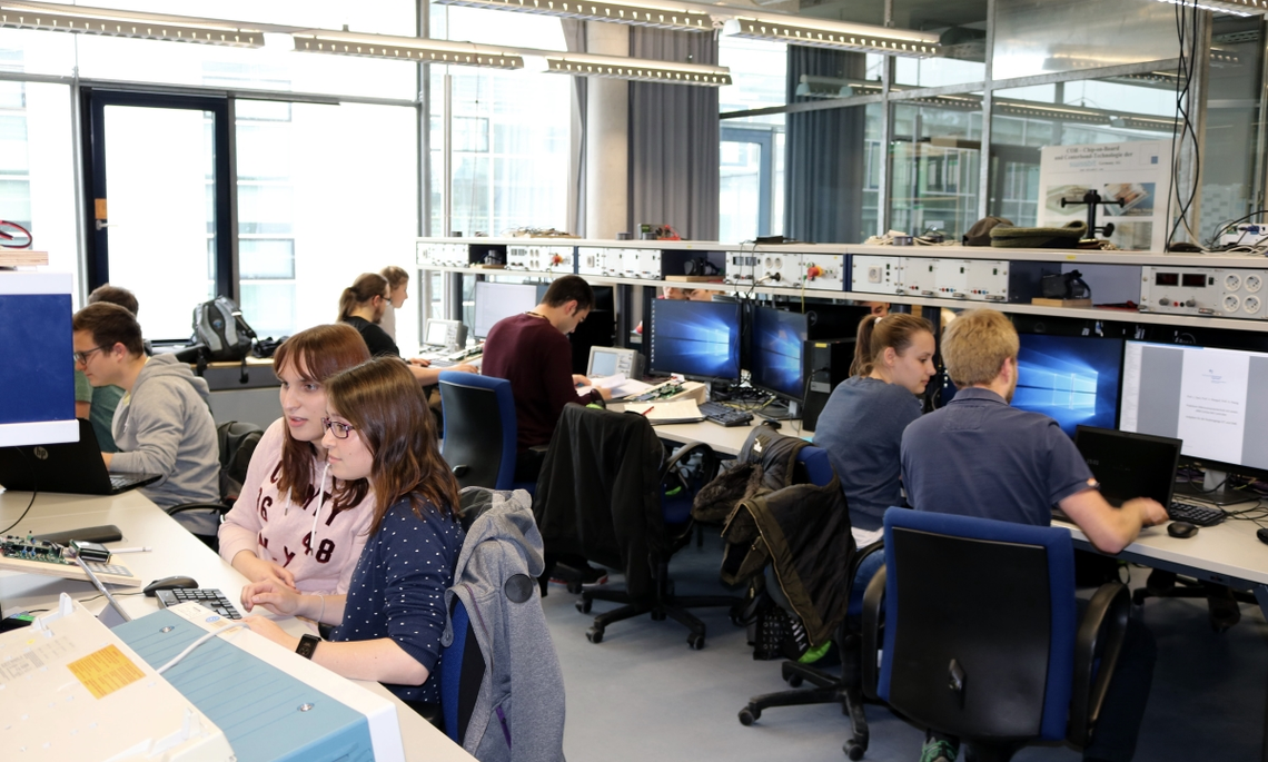 The understanding of microcomputers and digital technology and the practical handling of both electronics (hardware) and hardware-related programming (software) is an important part of our students' education. The laboratory is used for practical trainings in the subjects of microcomputer technology and digital technology, for student projects on these subjects and for working on bachelor and master theses.
