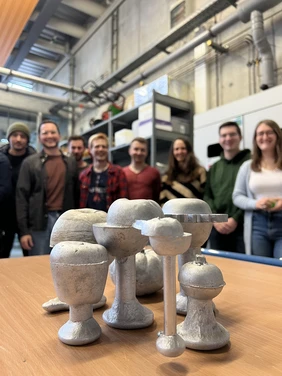 Students on the Master's degree programmes "Materials Technology and Resource Efficient Engineering" and "Technical Development in Mechanical Engineering" experienced sand casting first-hand in a practical course, from the initial idea to the finished casting.