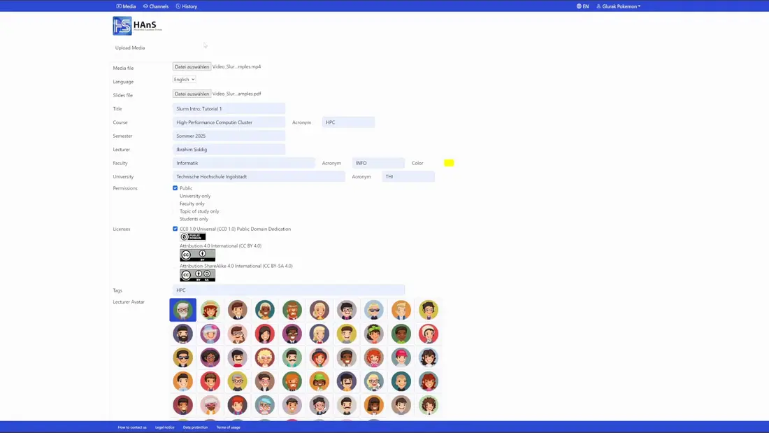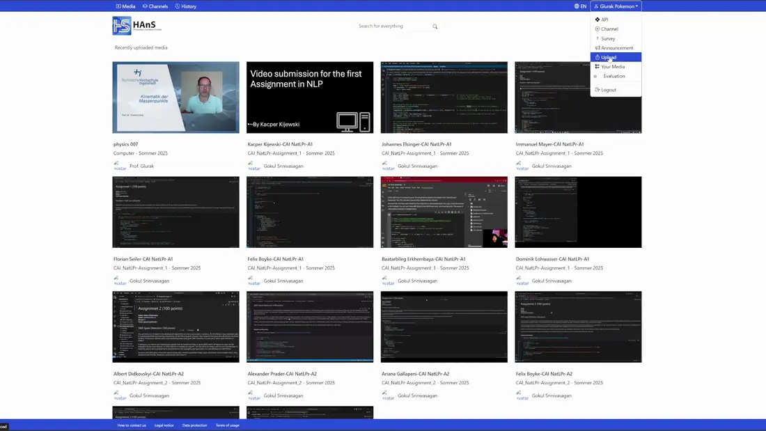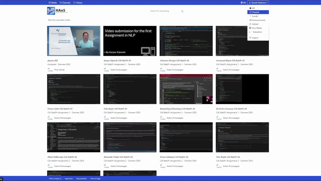 - Important! For the video to be assigned to the channel, listed course, semester and lecturer for the channel and the video have to match!