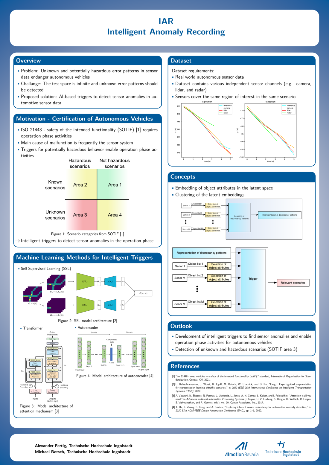 For this purpose, ISO 21448 - Safety of the intended functionality (SOTIF) offers approaches on how verification and validation can be implemented for such systems. One particularly important aspect here is the activities during the operation of automated vehicles, the so-called "operation phase". Here, the driver in no way becomes an involuntary test object, since the functionality of the systems has been sufficiently tested by acceptance criteria. However, it is technically impossible to guarantee 100% confidence of the system against unknown and safety-critical errors, since the corresponding test effort would have to be almost infinitely large. One goal of ISO 21448 is therefore to minimize this residual risk by continuing to monitor the system during the operational phase to identify previously undetected systematic vulnerabilities or design gaps. For an entire fleet of highly automated vehicles, recording and evaluating all relevant data is practically impossible, which is why automation is being sought here as well. This is intended to detect conspicuous scenarios and thus trigger data recording.