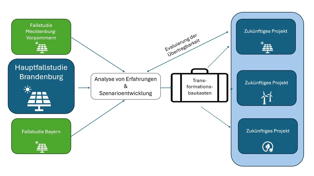 The toolkit should be applicable to other locations with planned large-scale renewable energy projects. There, it will be able to serve as a basis for argumentation, planning, development and decision-making by the stakeholders involved in connection with future, local energy transition projects. In addition, the preferences and needs of companies, municipalities and civil society groups will be researched in order to promote their participation in the design of facilities and their integration into local transformation concepts. The resulting recommendations for improving communication and participation processes are also part of the toolkit.
